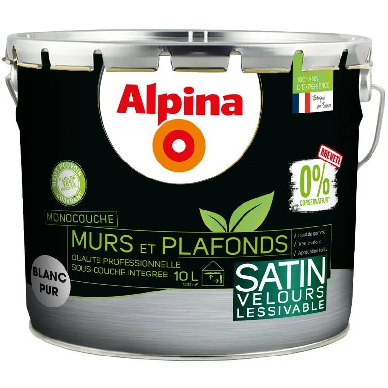 Alpina 0% Conservateur Mur Plaf Monocouche Satin 10L Blanc