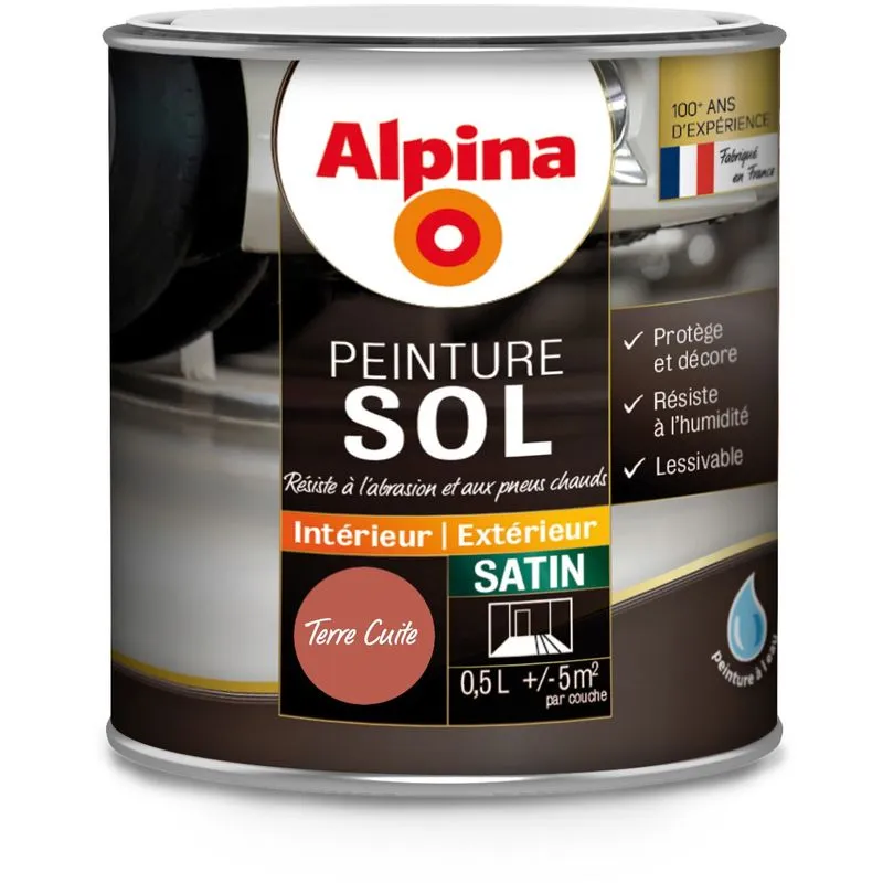 Alpina Peinture Sol – Intérieur & Extérieur – Satin – 0,5L | Couleur: Terre Cuite (Alpina) – Terre Cuite (Alpina)