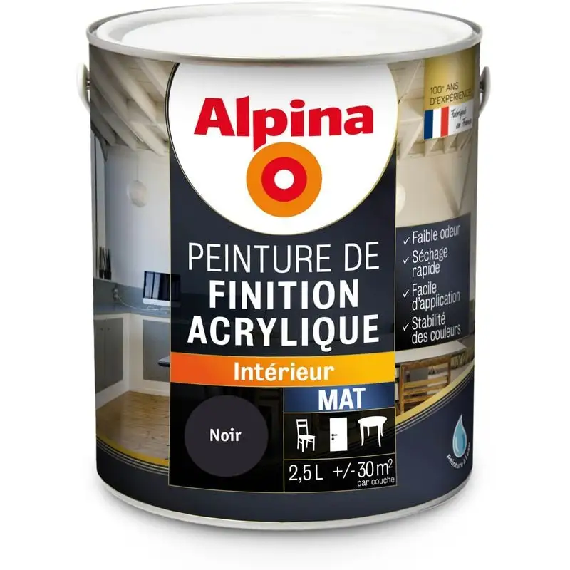 Peinture Alpina Acrylique 2,5L Mat | Finition: Mat – Couleur: Noir